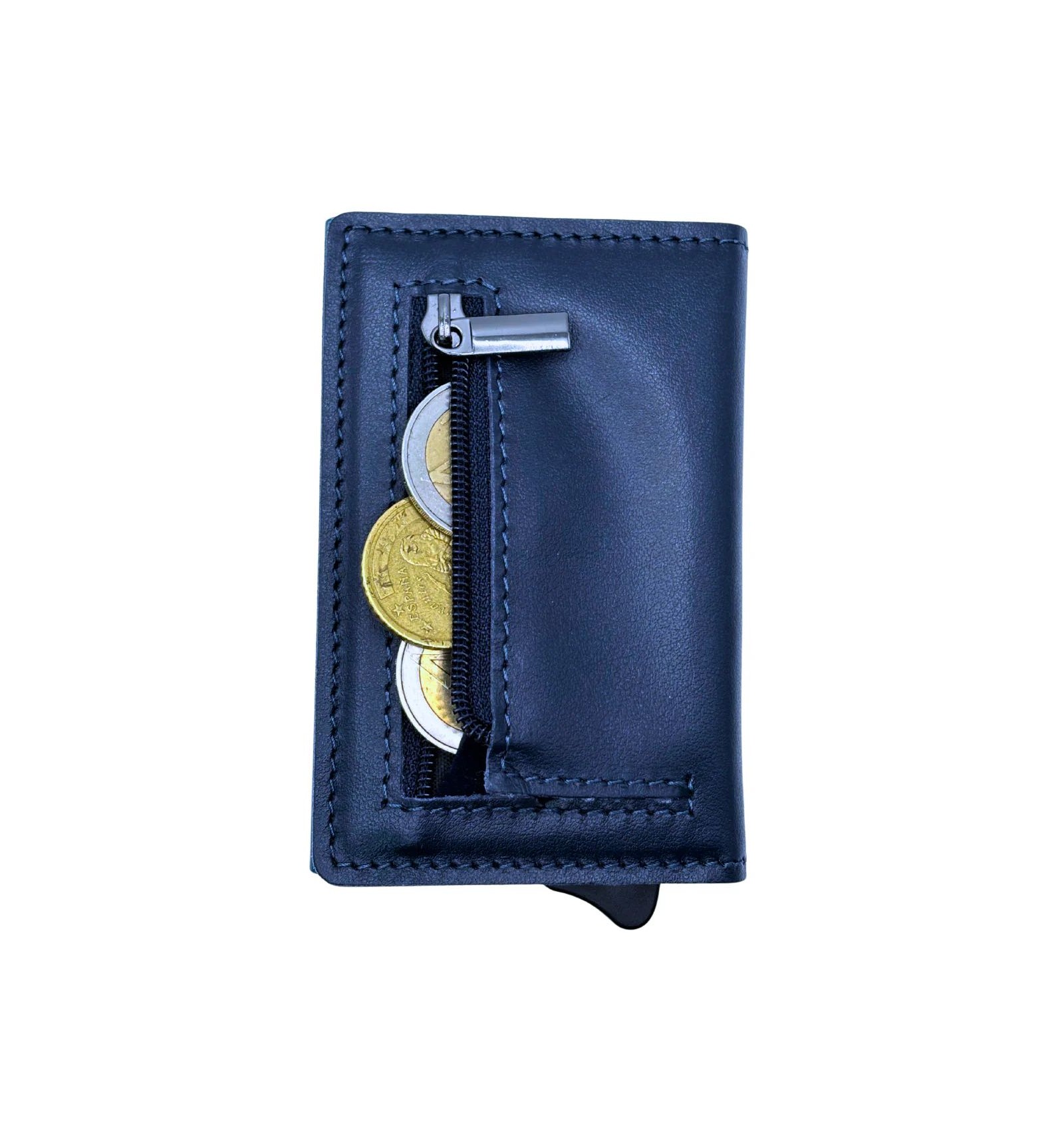 Art. - DESCRIZIONE: -1ONESPO® MAGNETIC PRO, portafoglio in Vera Pelle Vitello Pieno Fiore, colore Nappa Blu profondo, cuciture tono su tono. -Chiusura magnetica -Custodia in alluminio Protezione RFID per 6 carte 2 tasche interne per altre carte -Porta spiccioli con chiusura a cerniera -Porta contanti in Vera Pelle Vitello Pieno Fiore -Compatibile con: carta d'identitàelettronica, patente, tessera sanitaria e carte di credito o di debito, biglietti da visita ed assegni -Dimensioni portacarte: 10x6,5x2,7cm -Inclusa elegante e raffinata scatola regalo metallica
