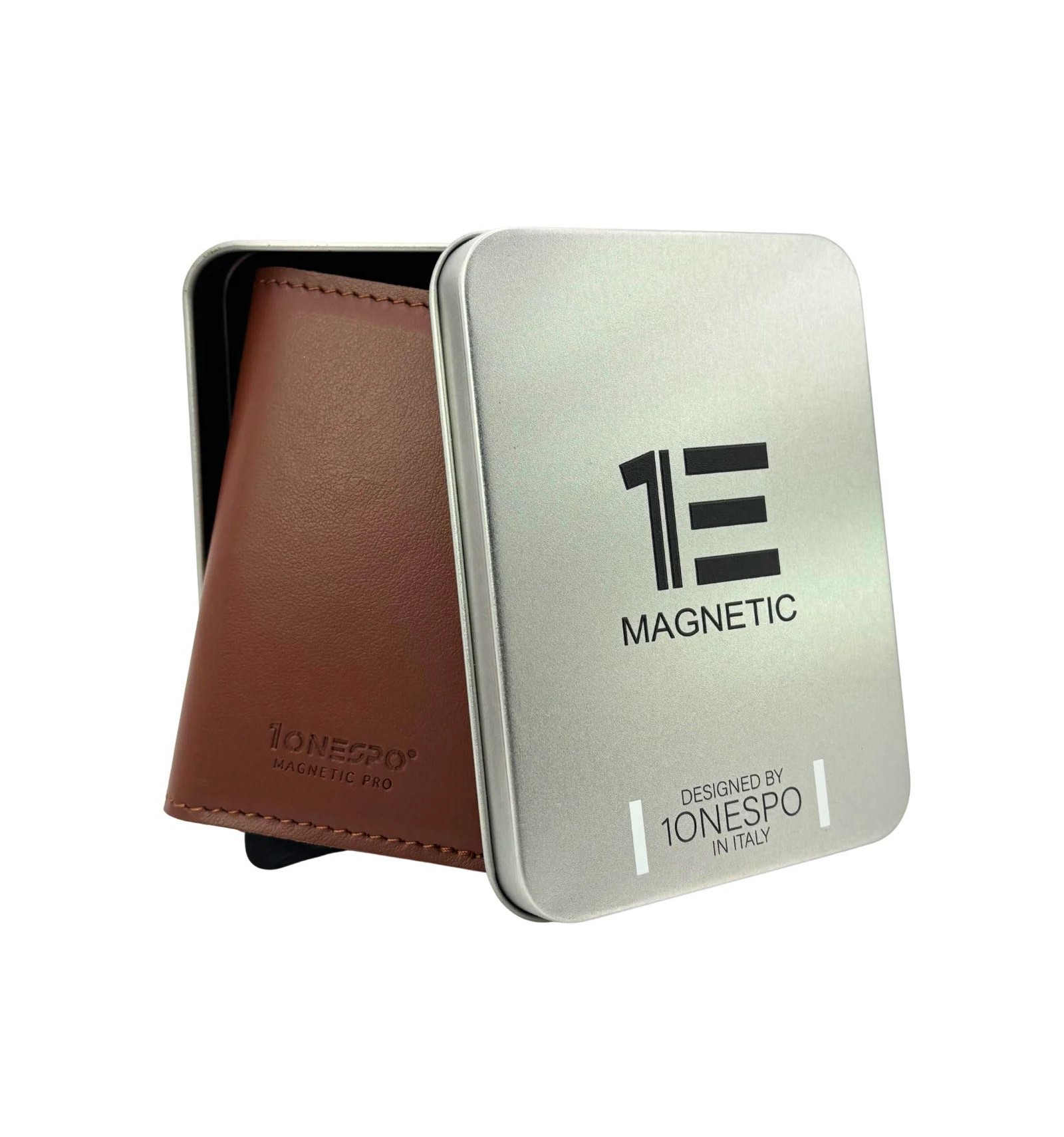 Art. - DESCRIZIONE: -1ONESPO® MAGNETIC PRO, portafoglio in Vera Pelle Vitello Pieno Fiore, colore Nappa Marrone Choco, cuciture tono su tono. -Chiusura magnetica -Custodia in alluminio Protezione RFID per 6 carte 2 tasche interne per altre carte -Porta spiccioli con chiusura a cerniera -Porta contanti in Vera Pelle Vitello Pieno Fiore -Compatibile con: carta d'identità elettronica, patente, tessera sanitaria e carte di credito o di debito, biglietti da visita ed assegni -Dimensioni portacarte: 10x6,5x2,7cm -Inclusa elegante e raffinata scatola regalo metallica