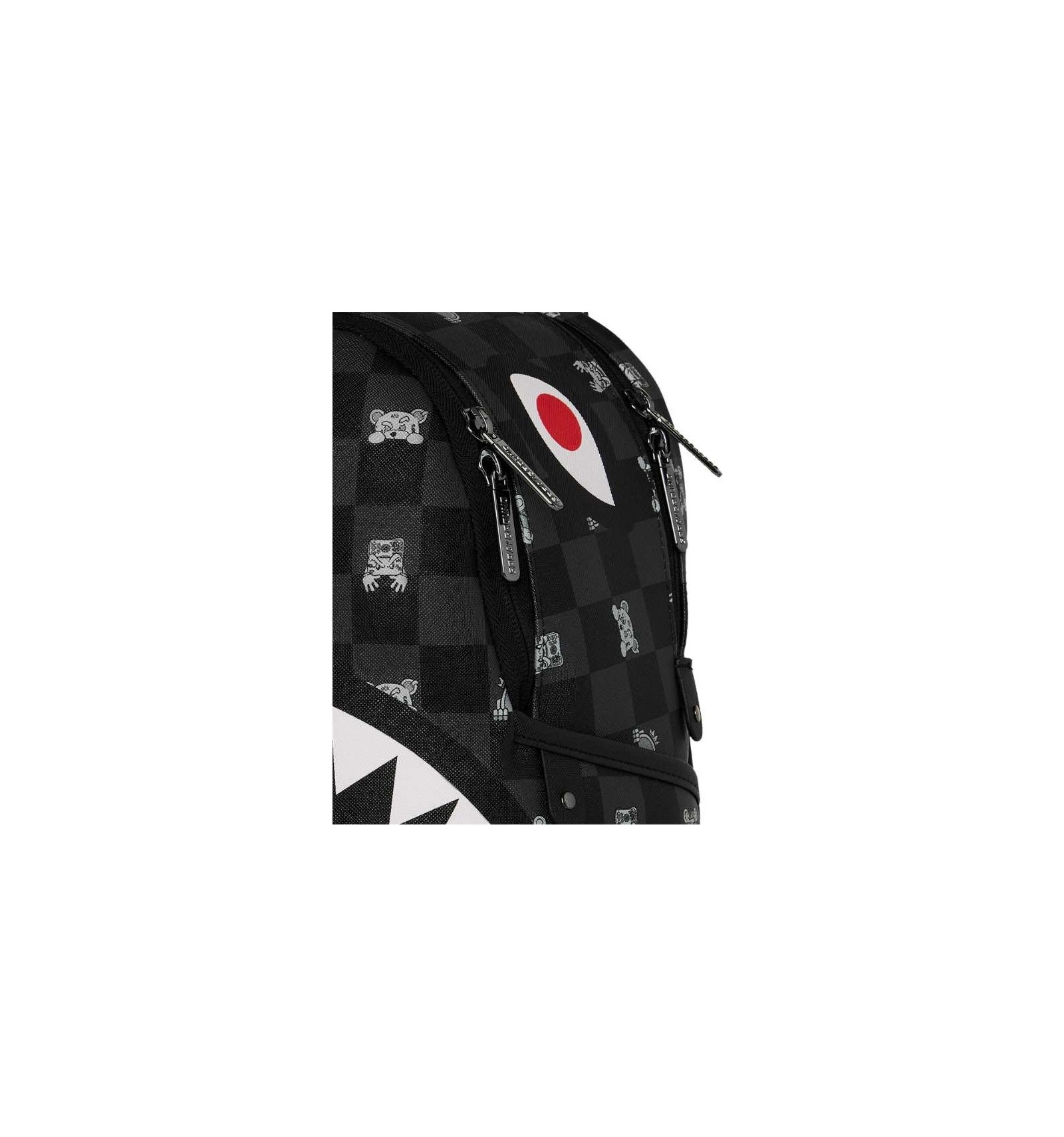 Art. - DESCRIZIONE:Zainetto Sprayground nero, rappresenta la grafica “GRAY PEEKING CHARACTER CHECK SAVAGE BACKPACKâ€. Realizzato in eco-pelle resistente e durevole presenta due scomparti frontalmente con chiusura con zip logata, due tasche laterali e una tasca con zip nascosta sul retro. Cinghie regolabili per ogni tipo di taglia e manico sulla parte superiore. Internamente presenta scomparto organizer con zip, tasca a soffietto e tasca con zip. DIMENSIONI: 25cm x 13cm x 30cm